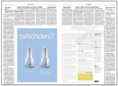 Tunnel-Anzeigen laufen über den Mittelsteg von zwei Seiten, allerdings nicht in der vollen Breite, sondern sind an den Seiten von Text umgeben.